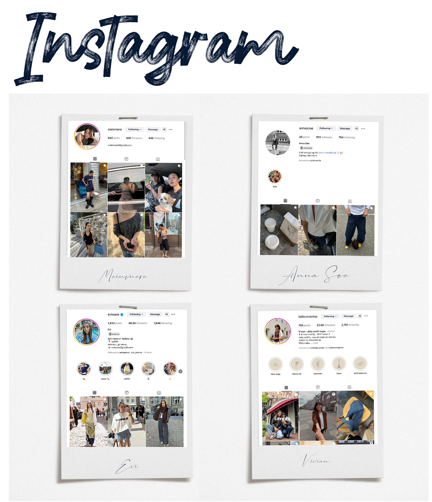 All of them talk about fashion in different ways, outfits of the day, travel vlogs and more. I love to follow them and get inspired.